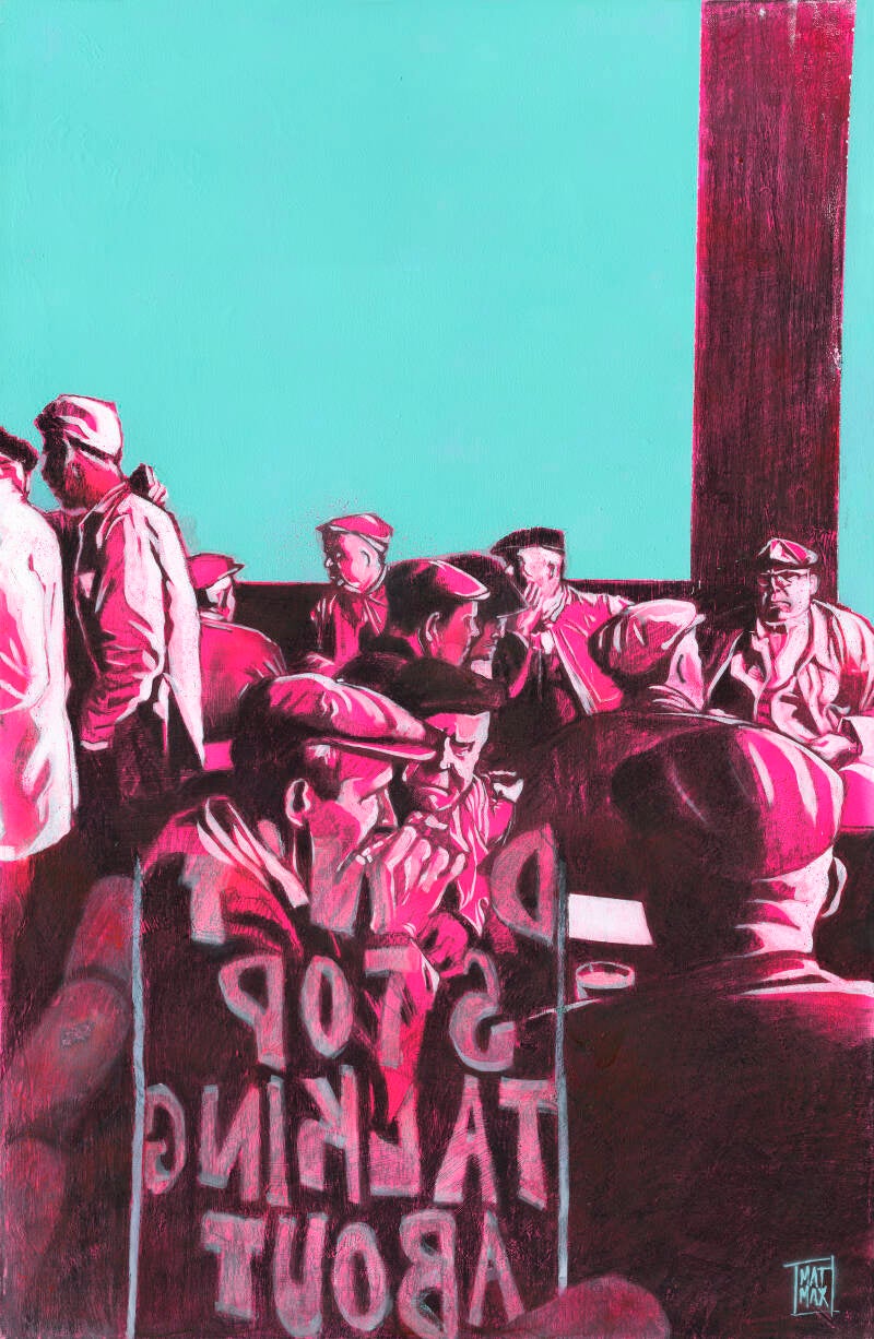 Two men and a kid - huile/toile (en cours) - 50x70 cm (2024)